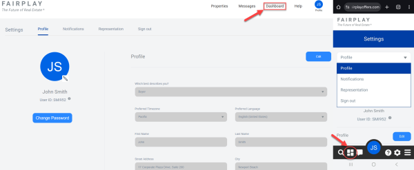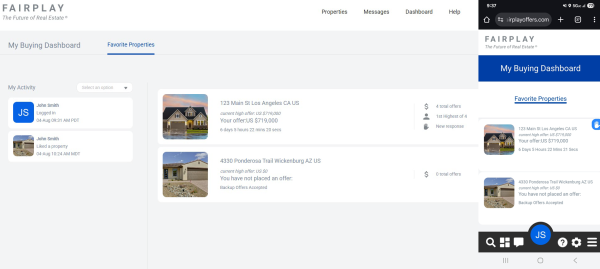 Your Buyer's Dashboard conveniently displays all your favorite properties, and the properties you've made offers on. To access it click on "Dashboard" in the menu, or on mobile the dashboard icon is the second icon from the left.